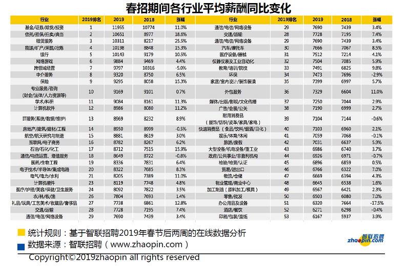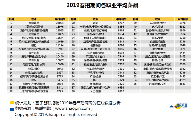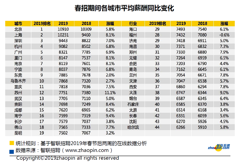 | 智聯招聘發布《2019春季人才流動報告》春招平均薪酬為8,165元 |
