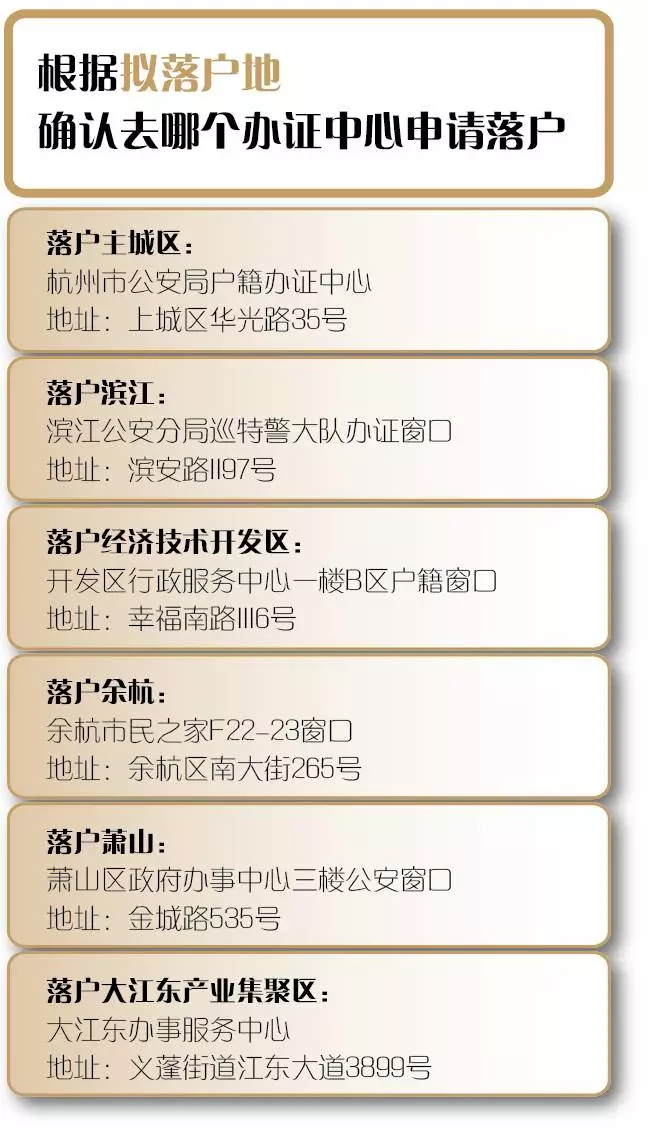 到哪里申請辦理高技能人才落戶? 申請落戶在杭州主城區的到杭州市公安局戶籍辦證中心(華光路35號)辦理,落戶在濱江區、經濟開發區、余杭區、蕭山區、大江東產業集聚區的前往當地公安分局(辦證中心)申請辦理。(具體地址請見下圖)
