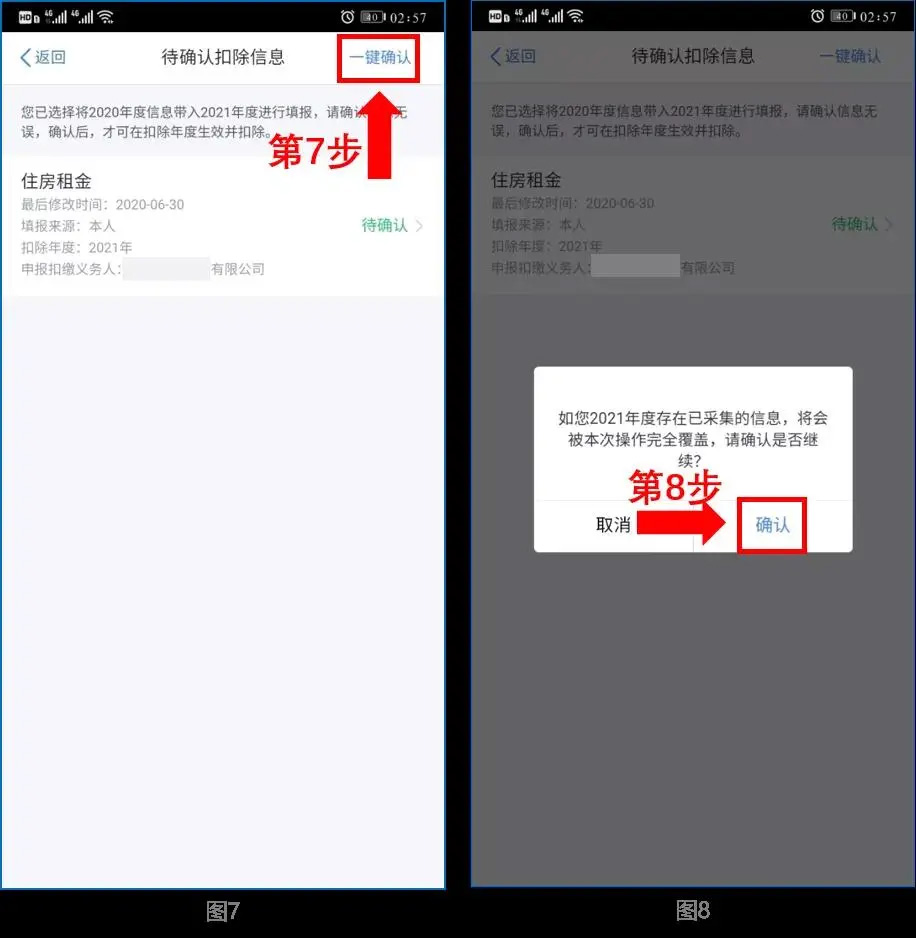 導讀 根據個稅政策規定:專項附加扣除的信息需要納稅人每年都提交一次。為做好個人所得稅2021年的預扣預繳工作,確保您2021年繼續享受專項附加扣除政策,仁本第一時間給大家推出“2021年專項附加扣除信息確認”以下內容要點,幫助大家順利完成本年度的專項附加扣除信息確認。 01、為什么要進行信息確認? 02、個稅APP端 | 確認操作步驟 03、電腦網頁端 | 確認操作步驟 04、專項附加扣除 | 申報條件 05、專項附加扣除 | 常見問題 01 為什么要進行信息確認? 用戶在2020年12月31日前,需對2021年的專項附加扣除進行確認。若未及時確認,那么已填報的扣除信息將自動視同有效并延長至2021年。可能看到這兒,有用戶就會想,沒有啥變化,不操作了,但是…… ?我們建議您確認下 即使信息沒有變化,建議大家最好還是核對下自己的信息是否填寫的正確。因為系統在不斷升級的過程中進行了調整、用戶本身信息變化或之前申報時信息填寫錯誤,很可能會造成之后的信息失效、不符合扣除條件、單位無法下載等問題。所以您確認之后提交給扣繳義務人的,最遲3天內單位能夠下載到您的信息,到時您和單位確認下是否能在申報系統中下載到您填報的專項附加扣除信息。 ?提醒 | 這幾種情況需要修改 ①想修改2021年贍養老人、子女教育、住房貸款利息的扣除比例; ②有老人在2020年去世,2021年不能再申請贍養老人專項附加扣除; ③夫妻一方不再申請住房貸款利息專項附加扣除,在2021年由另一方申報; ④房租和房貸需要替換扣除的情況,即:2021年不再申報住房租金,改為申報住房貸款利息,或2021年不再申報住房貸款利息,改為申報住房租金。 02 個稅APP端 | 確認操作步驟 情形(一) ?2021年的專項附加扣除信息無變動,只需在2020年基礎上確認即可。 ① 打開個人所得稅APP-首頁-“專項附加扣除填報”-選擇“扣除年度”——“一鍵帶入”;如下圖1、圖2: